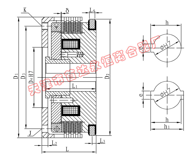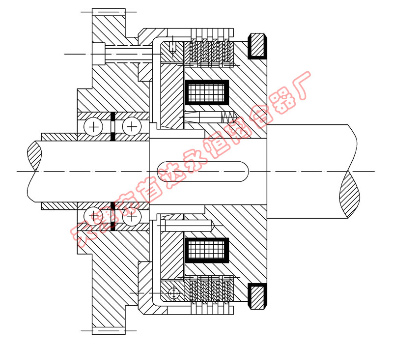 該系列離合器屬于磁通不經過摩擦片組的結構形式,短電后的殘余力矩小,動作時間快。特別適用于對動作時間有要求的場合使用。在使用過程中摩擦片磨損到一定程度,出現力矩下降時,需將工作氣隙進行調整。